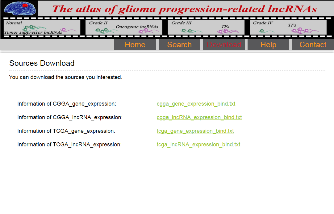 We provide the TCGA and CGGA resources include gene and lncRNA for users to download.