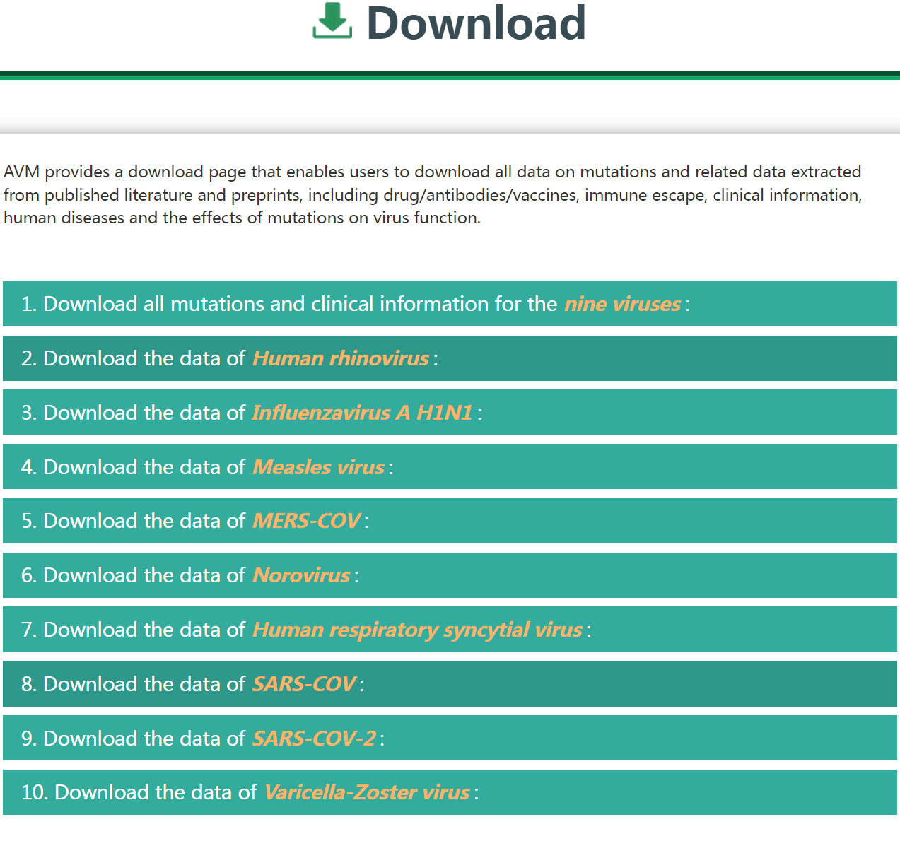 - 6. How to Download the mutation data across nine viruses of AVM?
