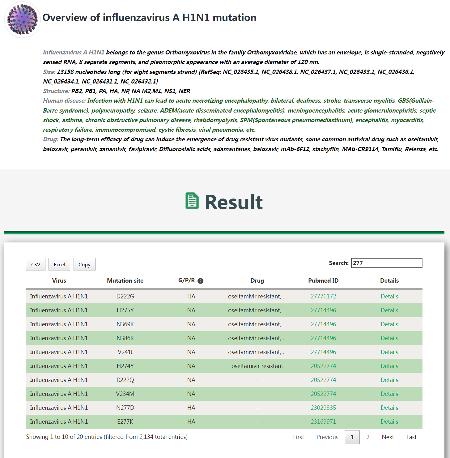 3. Quick browse all mutation data across nine viruses associated with aerosol-transmitted human diseases.