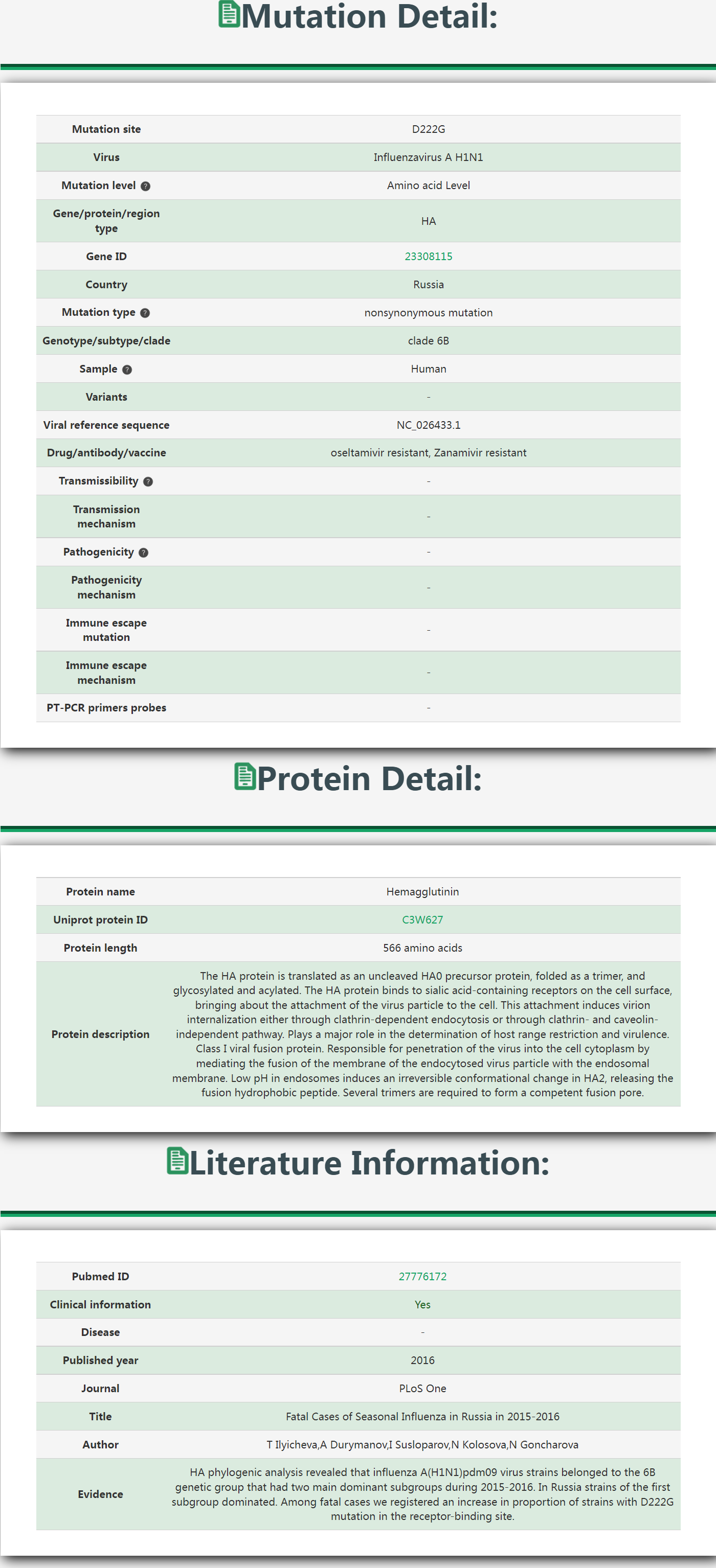 3. The PubMed information for mutation entries.
