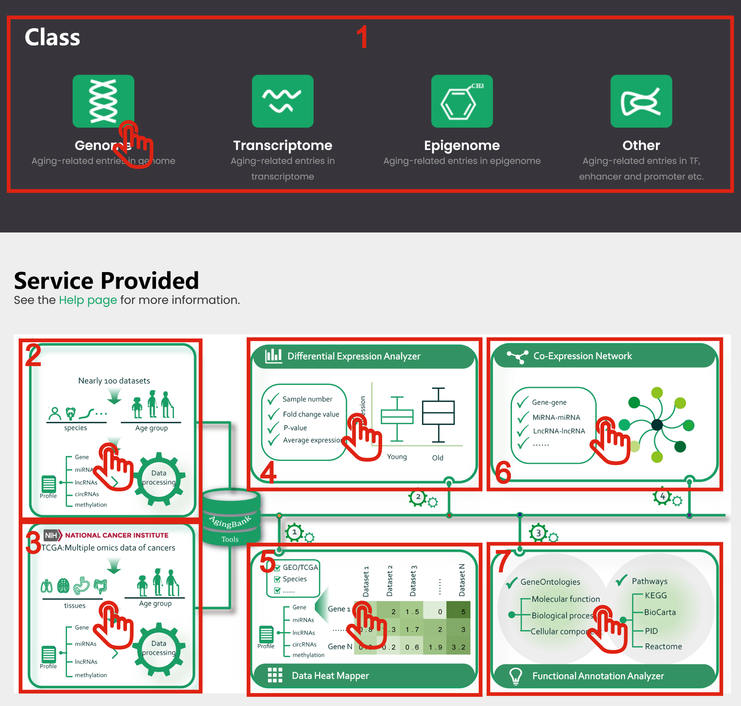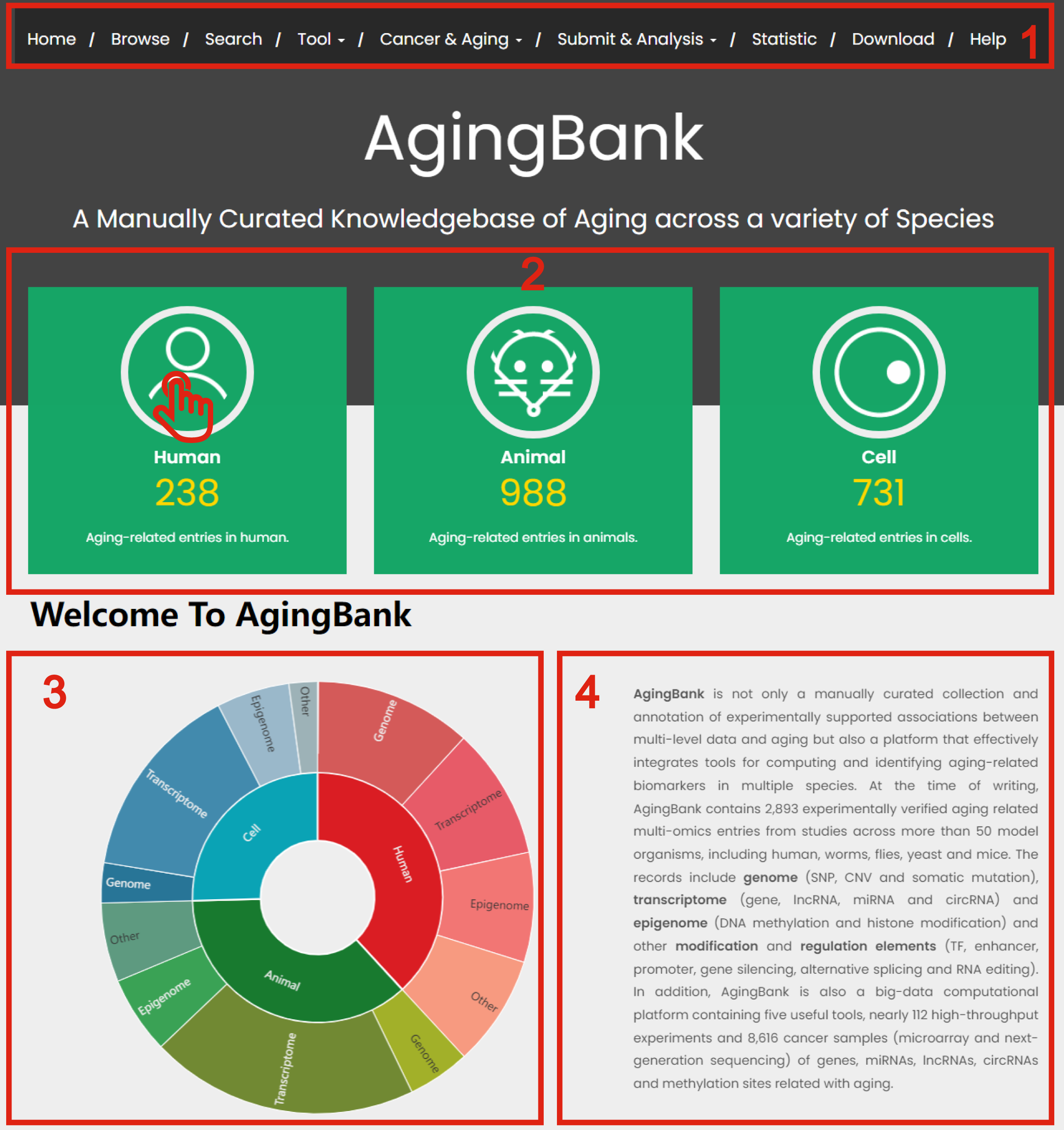 2. Quick browse and search experimentally verified data follow human, animal model and cell related with aging.