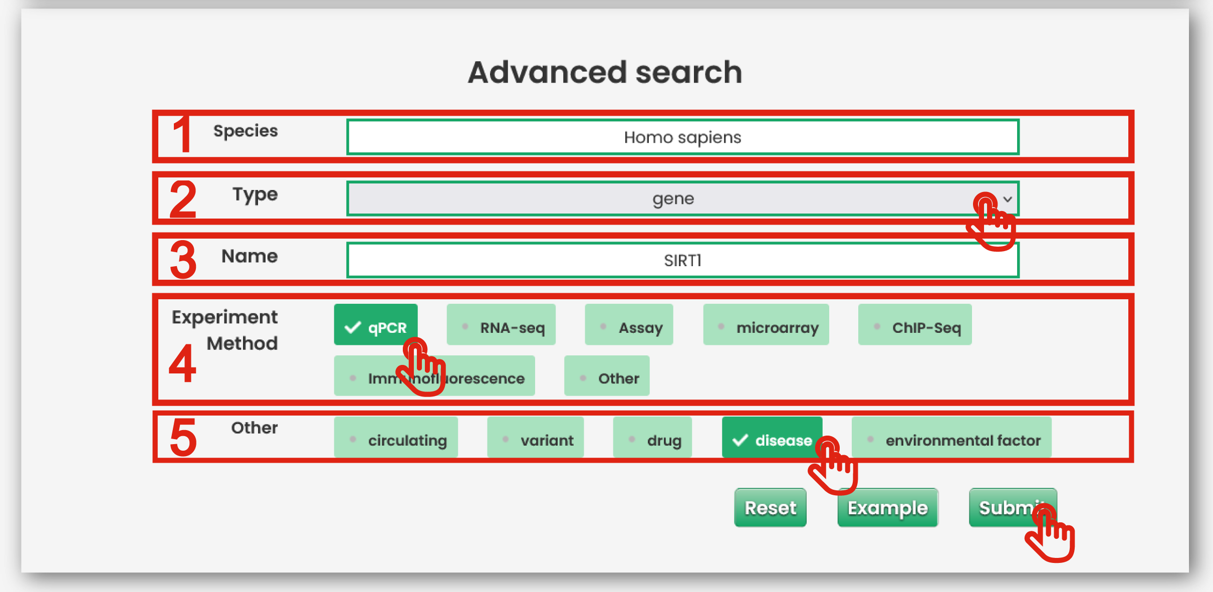4. Experiment method (RNA-seq, microarray, qPCR et al.) could filter the results.