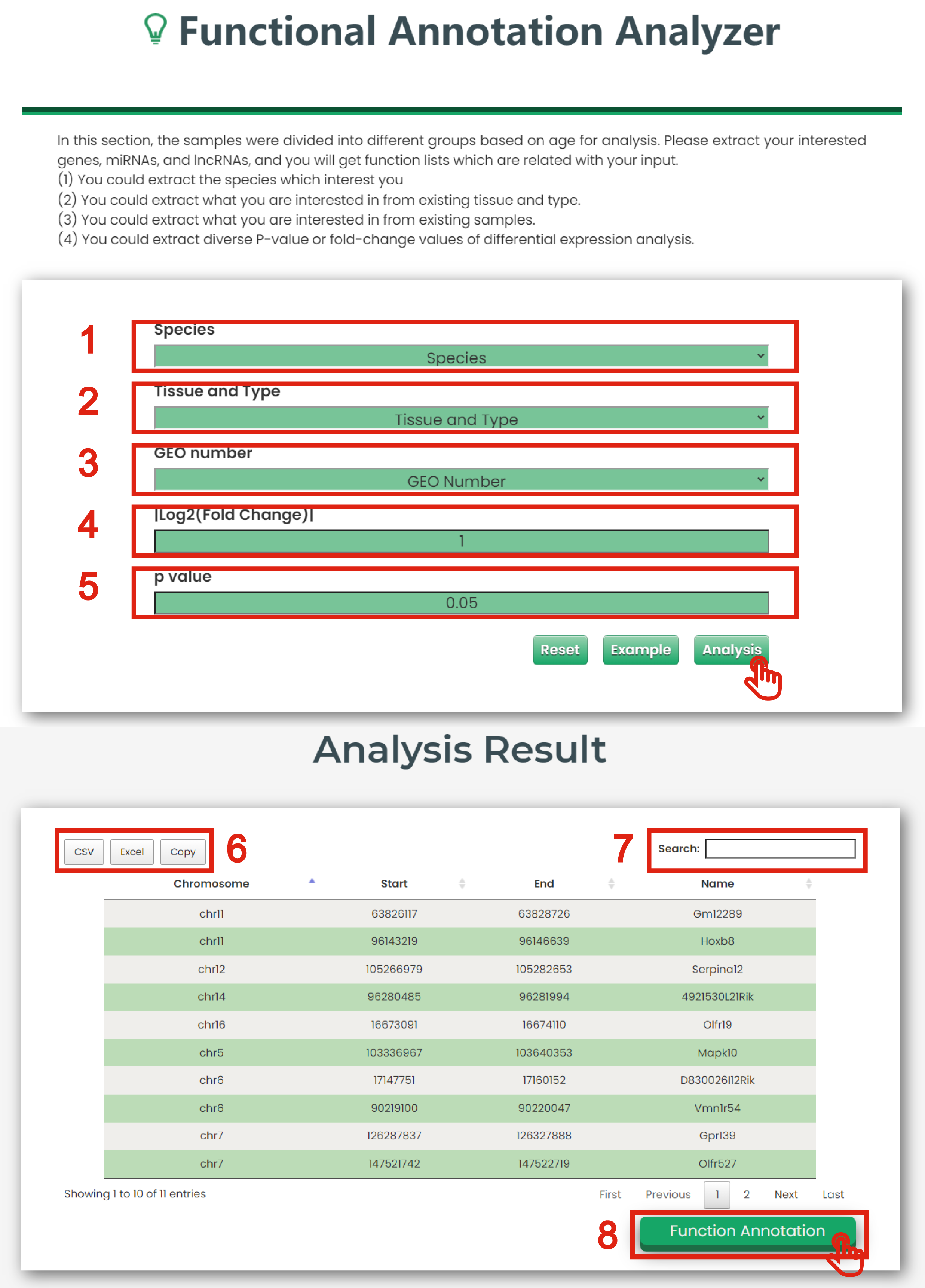 7. Click body parts to perform Functional Annotation Analyzer module.