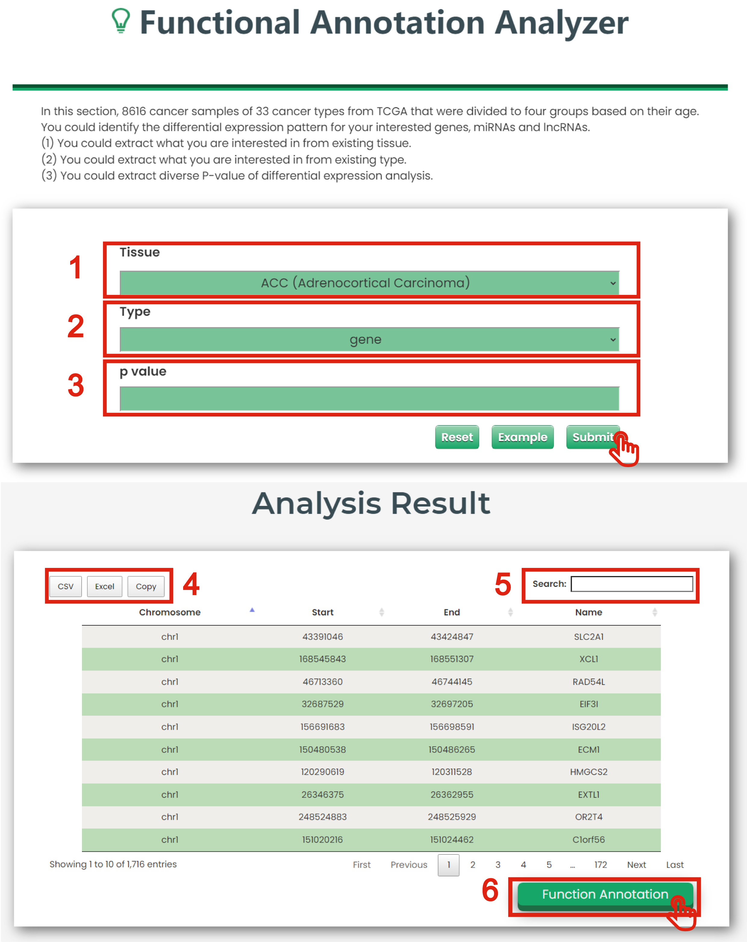 The Functional Annotation Analyzer page of Cancer & Aging is displayed in Figure 7-6:
