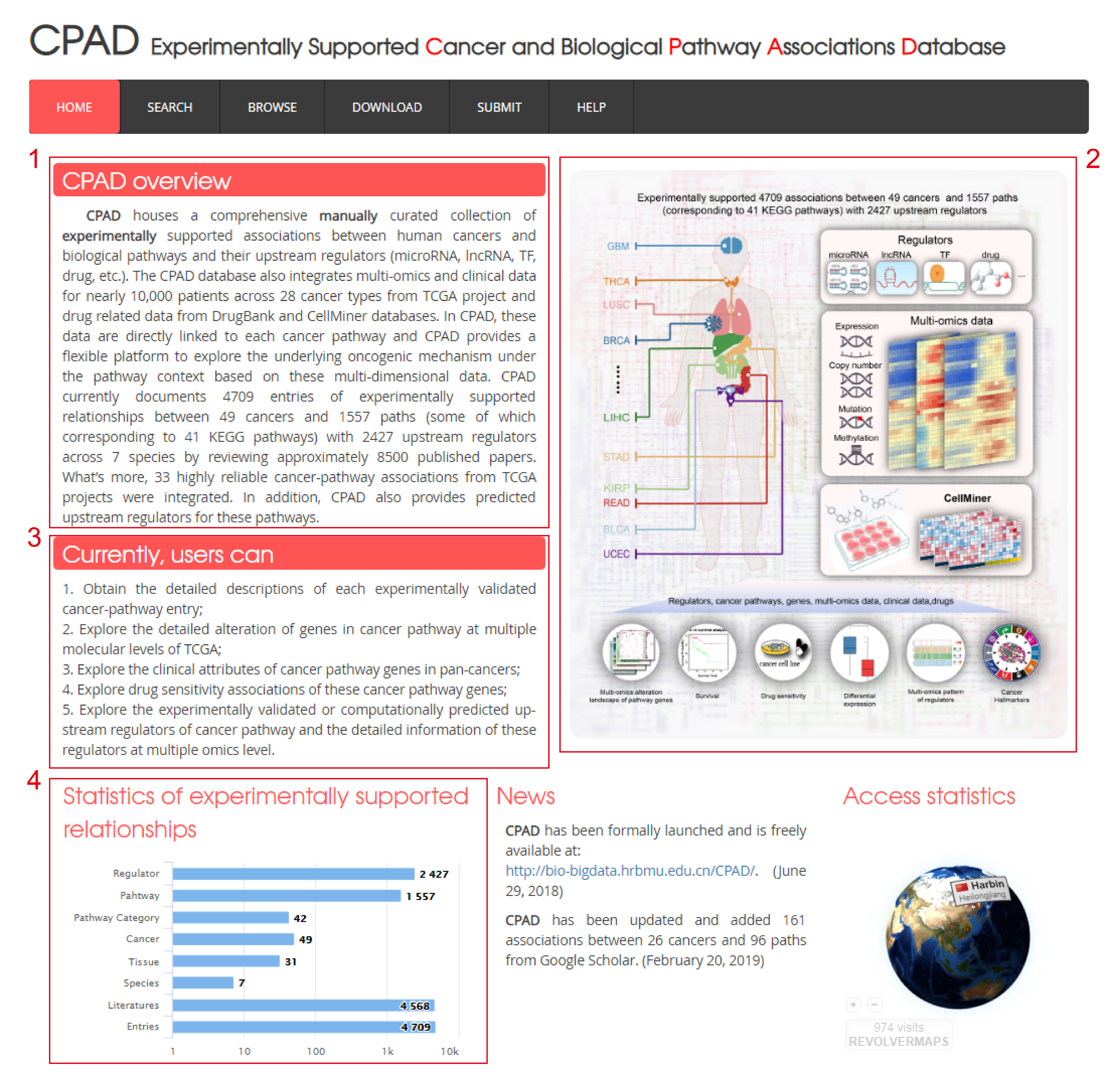 4. The statistics of the data in database, including the number of cancers, pathway and entries etc.