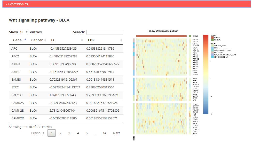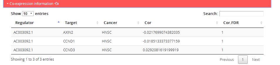 Co-expression information: Correlative expression of regulators and target genes in cancer pathway