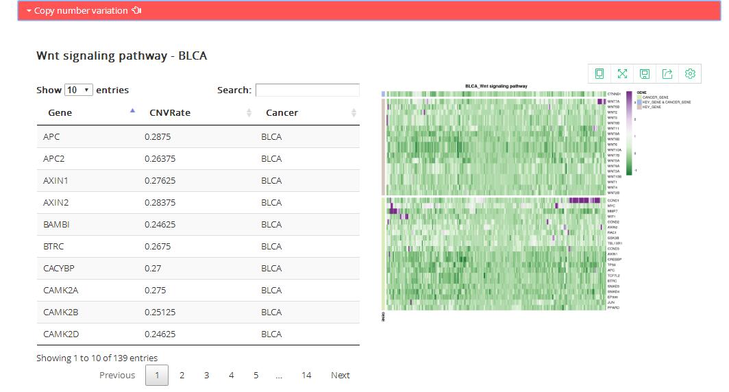 Table: the table shows copy number variation rate of all genes in corresponding KEGG pathway.