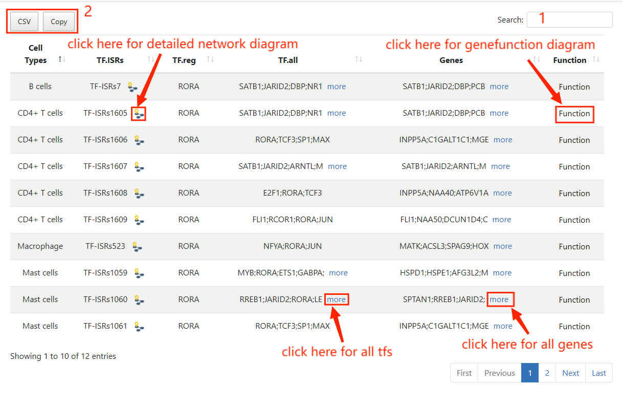 2. Click to export result table.