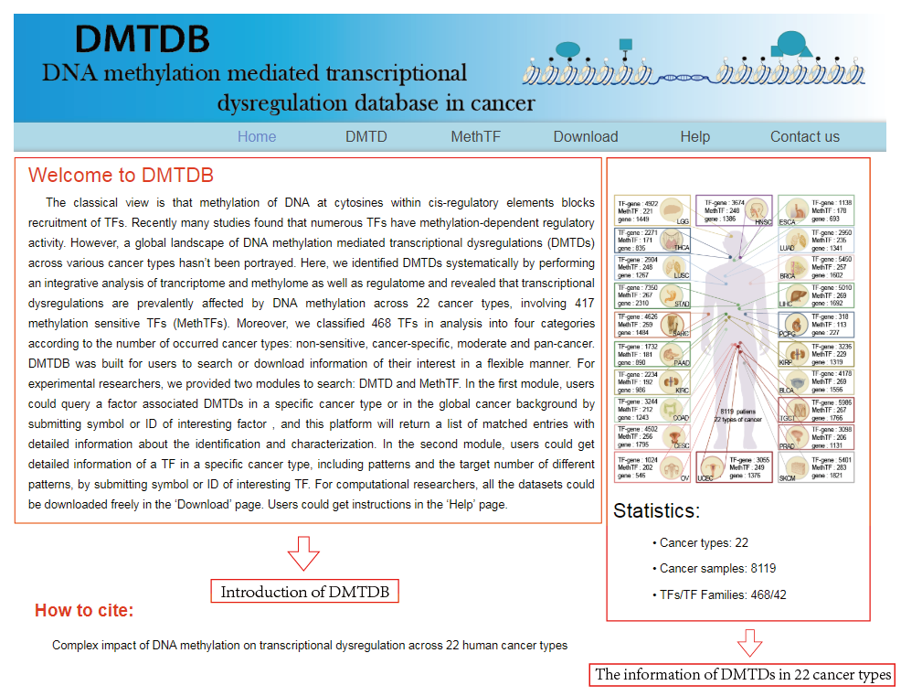 Welcome to DMTDB! Here is a step to step introduction about how to use the web to search the DMTDs and MethTFs identified in 20 cancer types.