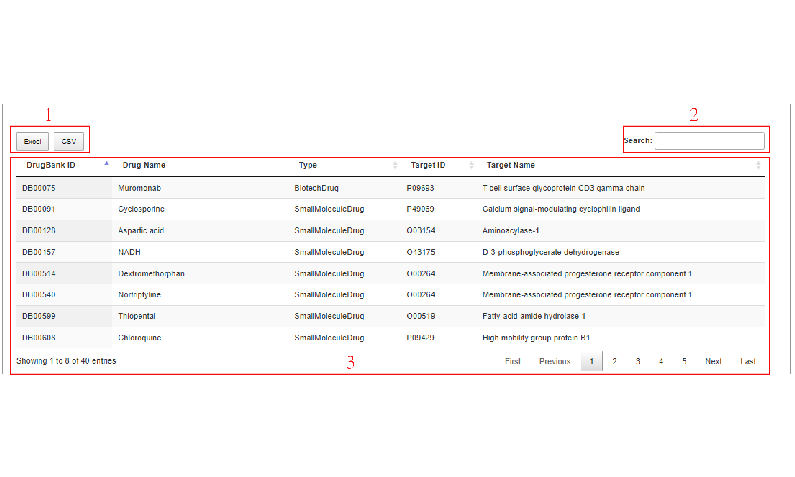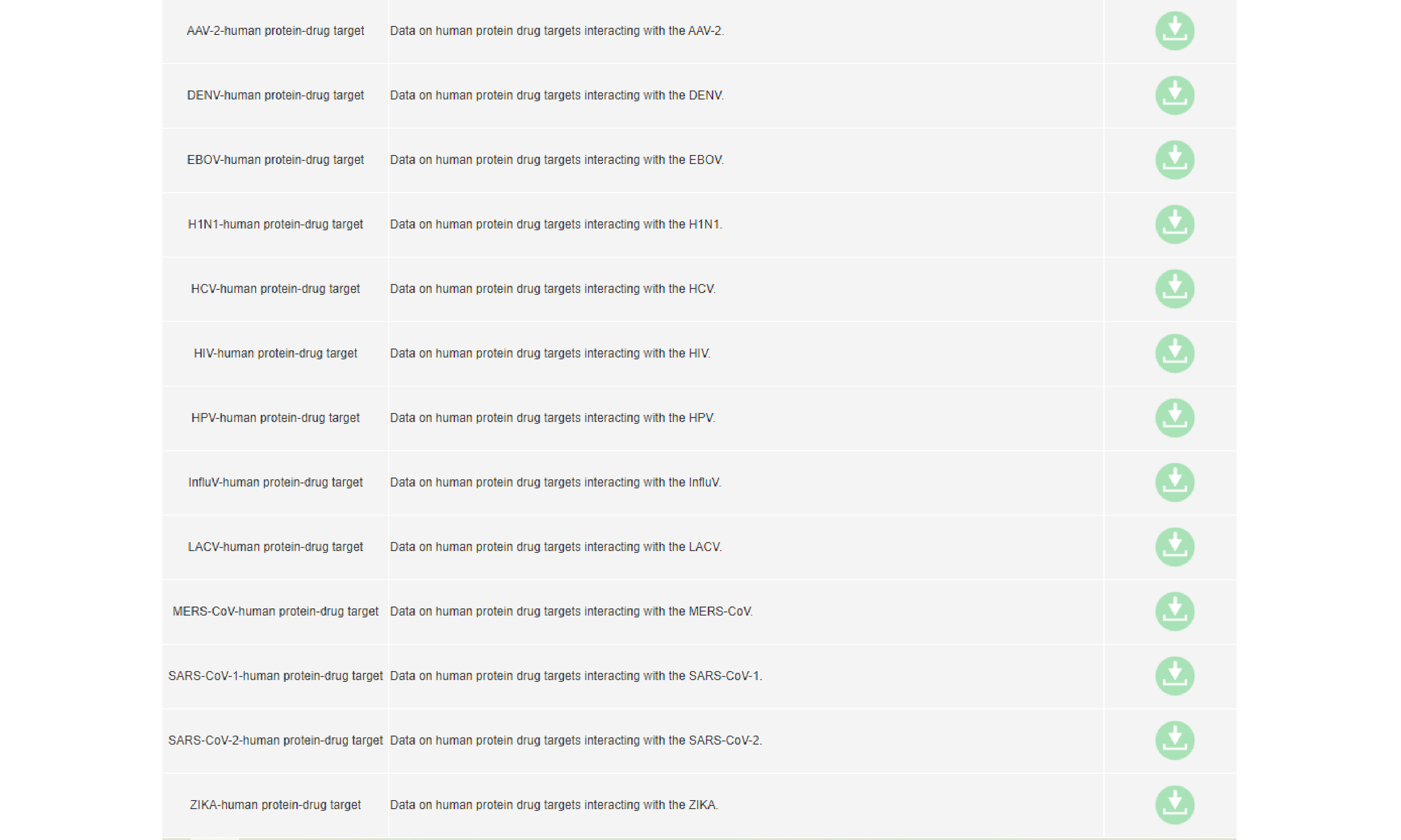 Data on drug targets interacting with human proteins can be downloaded directly.