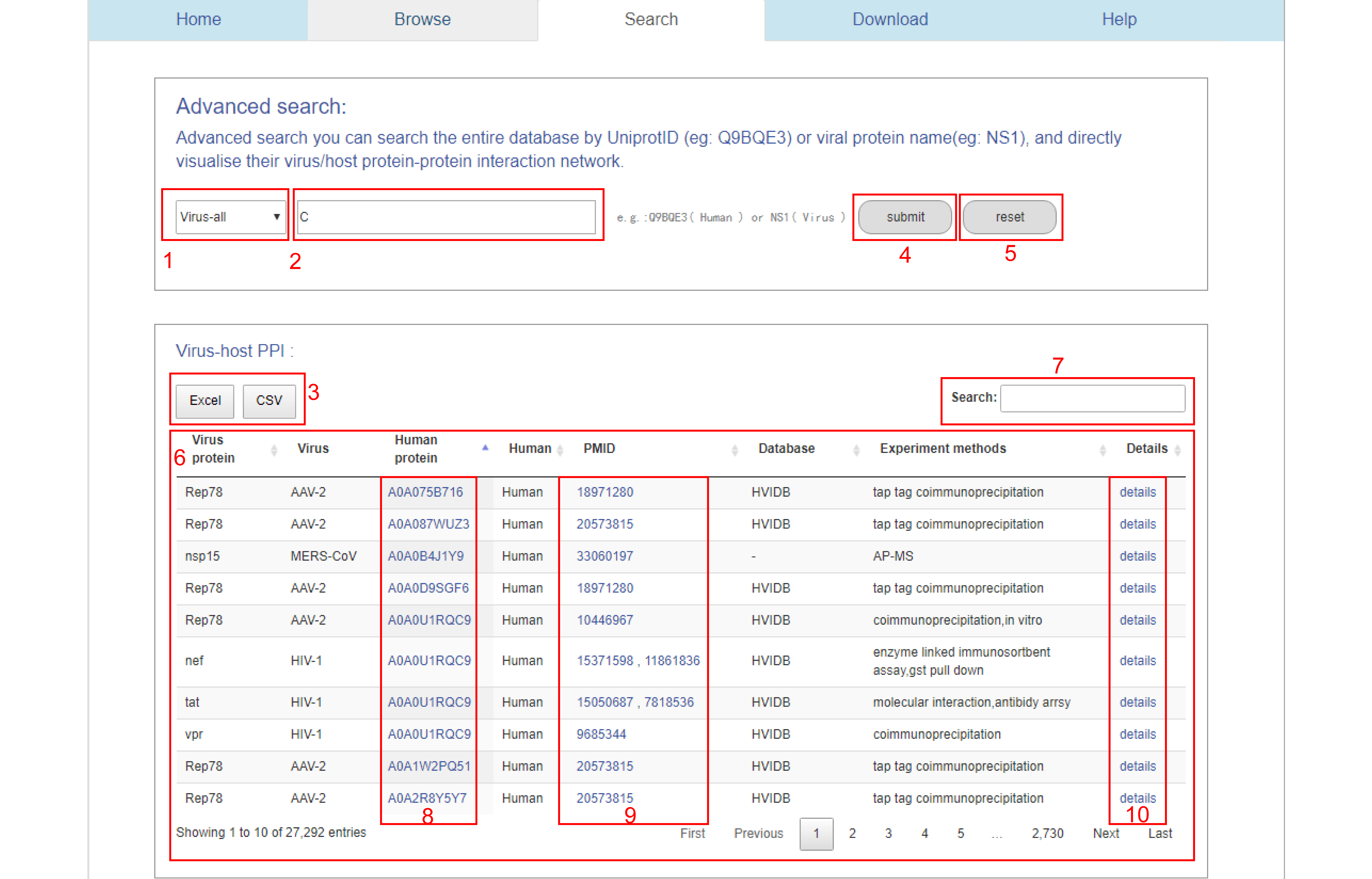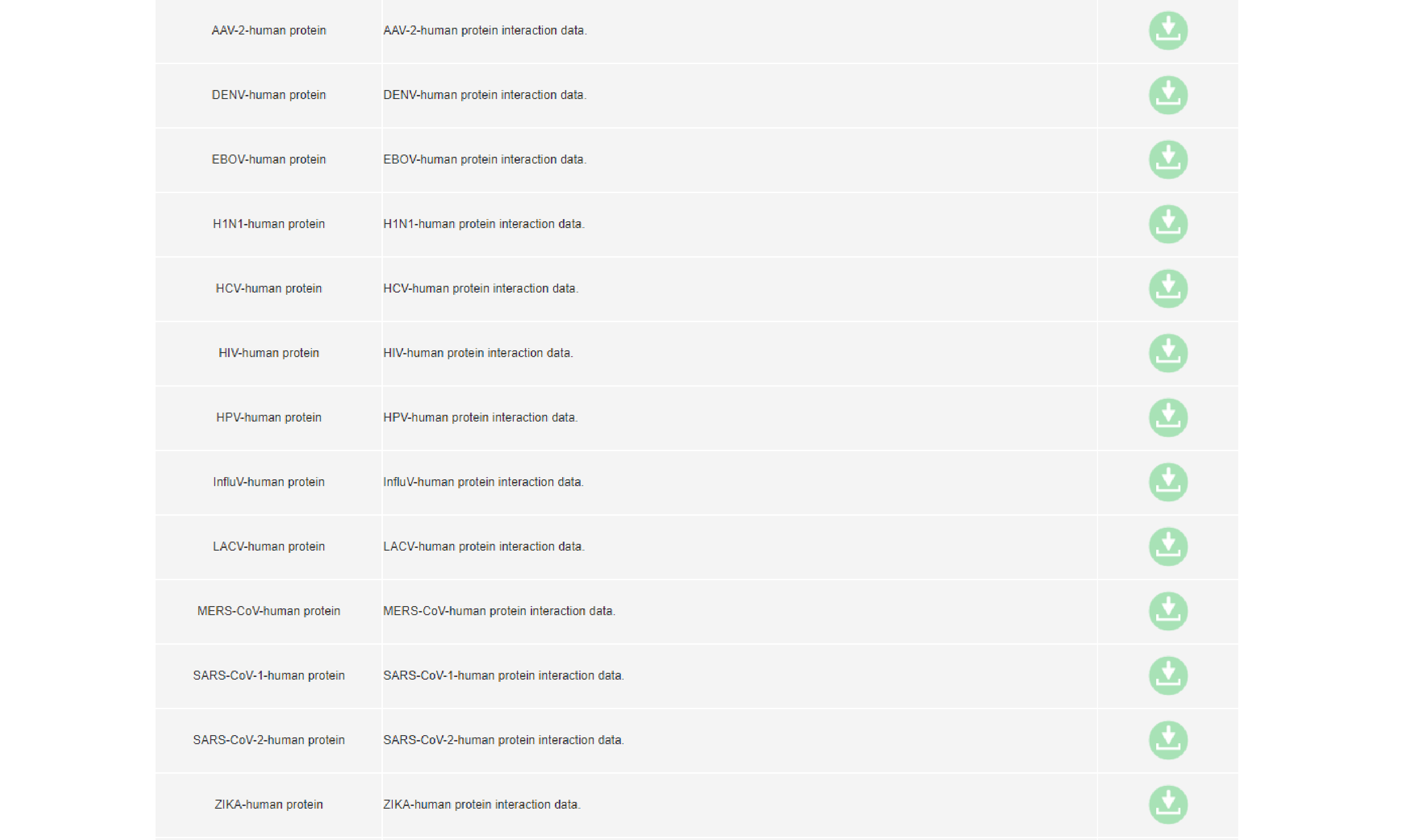 Viral protein and human protein interaction data can be downloaded directly.
