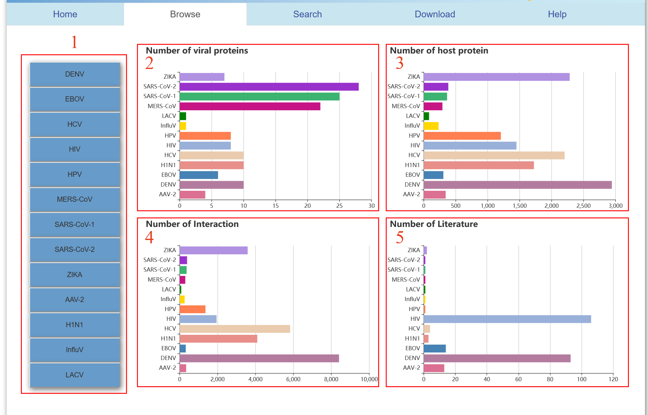 3.Number of host proteins corresponding to each virus.