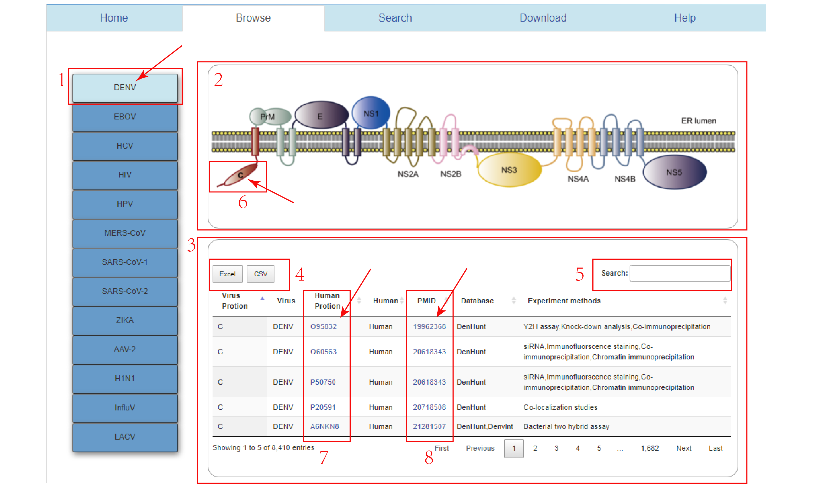1.Click on DENV virus in the virus navigation bar.