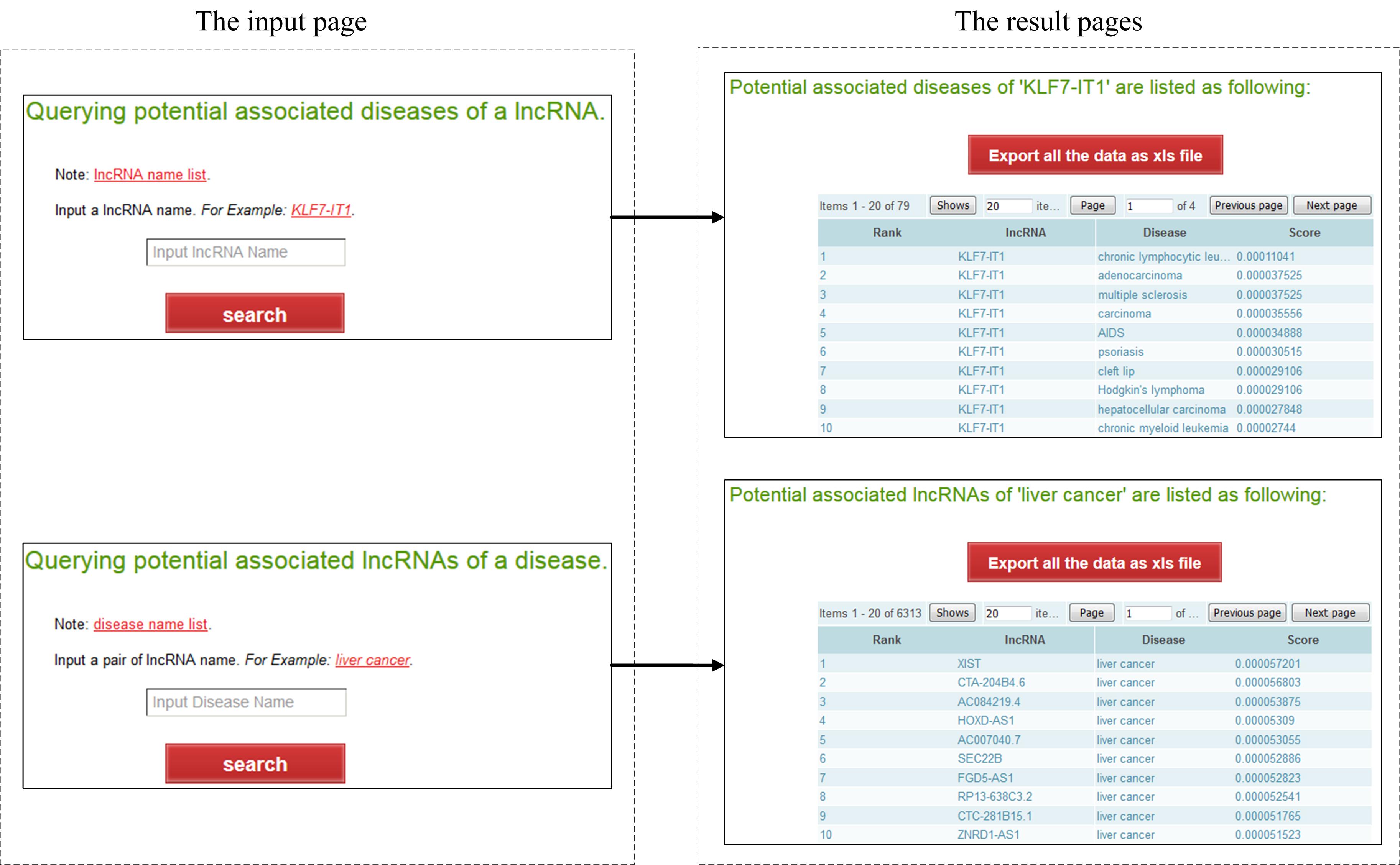 users can input a disease name, such as ‘liver cancer’, to search potential associated lncRNAs of it.
