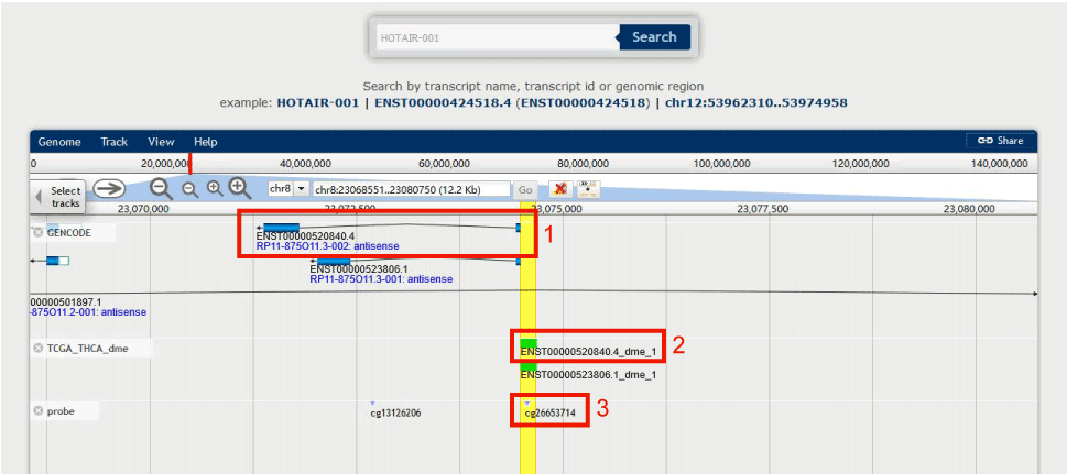 Figure 13-1 Search HOTAIR-005 in DMBrowser