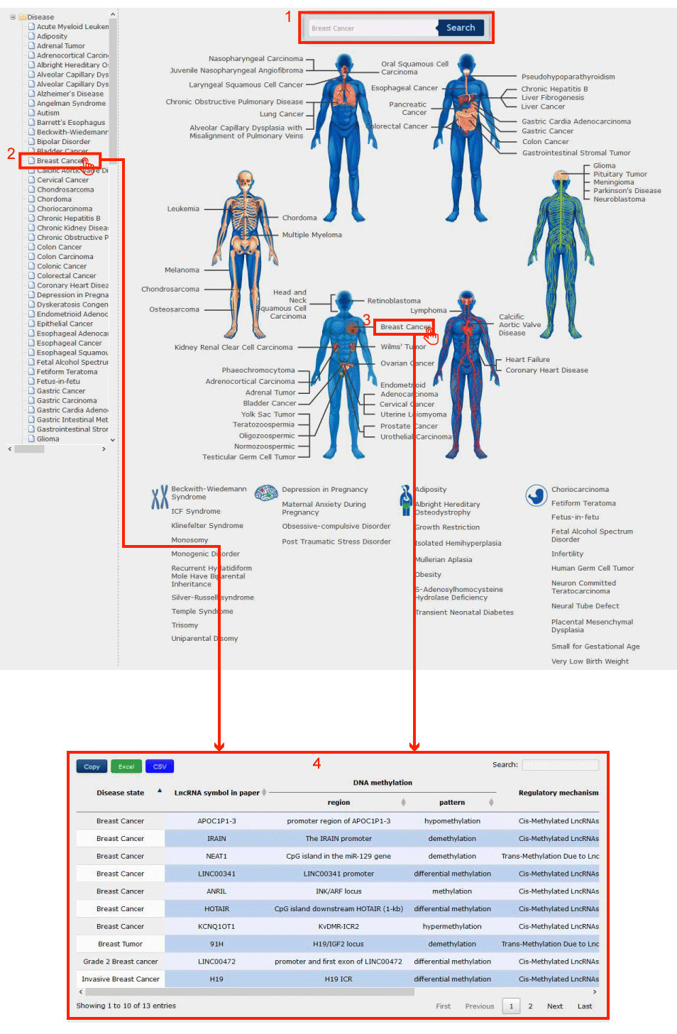 3. Browse and click to select the interested disease according to its anatomical classification in human bodymap.