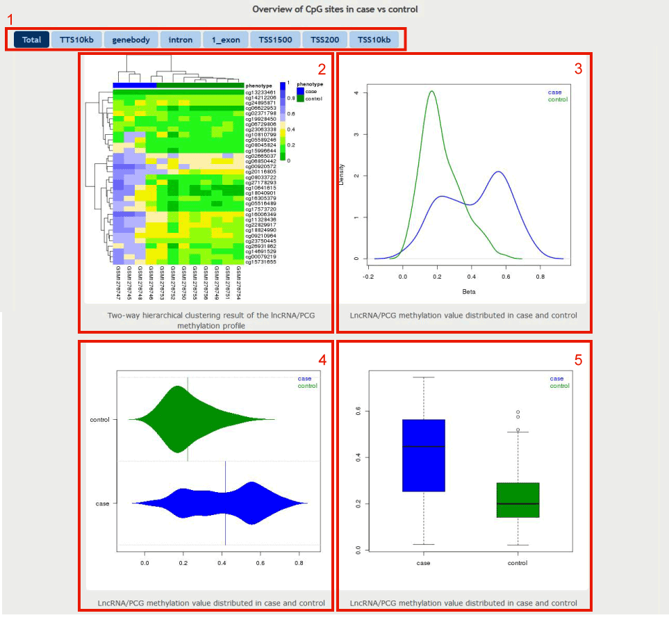 5. The box plot displays the distributed methylation value in case and control samples separately.