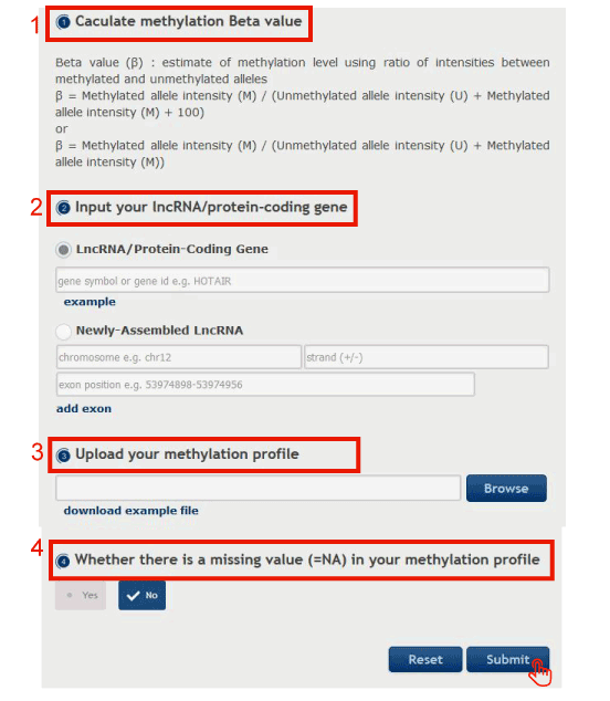 4. Choose 'yes', if there is a missing value in your methylation profile (the missing methylation value = NA).