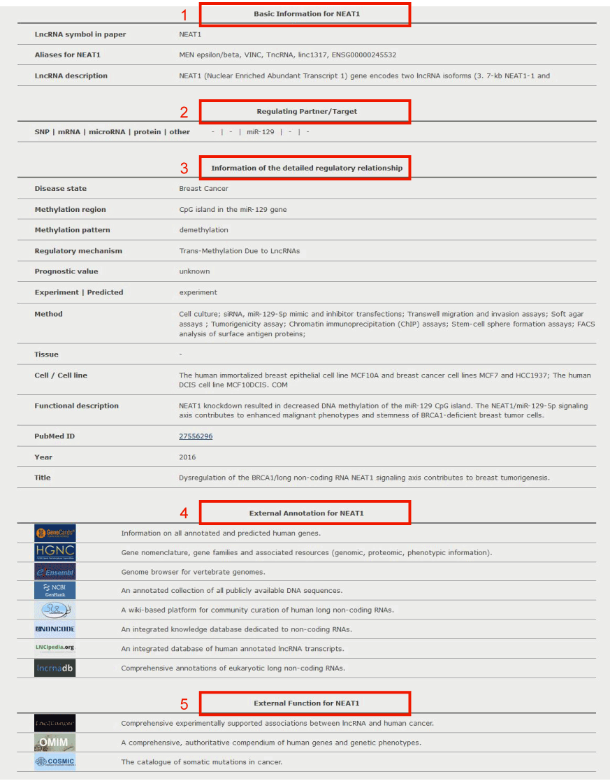 5. Users can search the external function information for the lncRNA by clicking on the corresponding hyperlink logo.