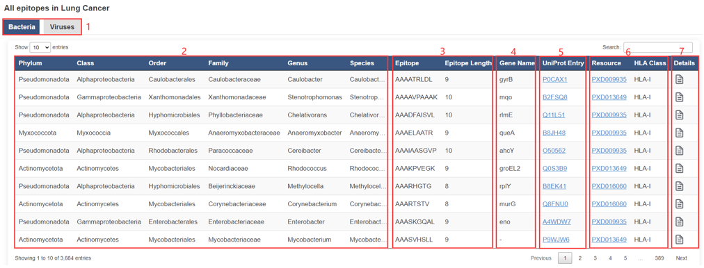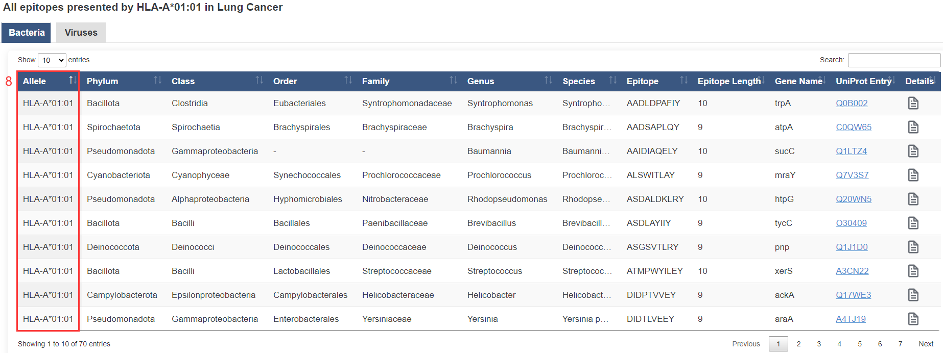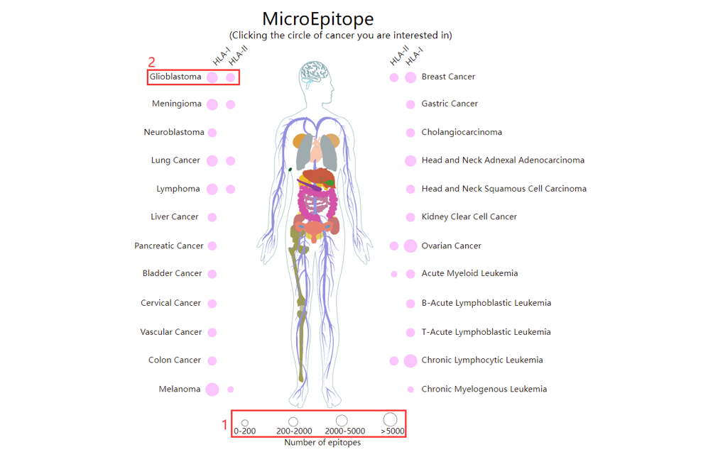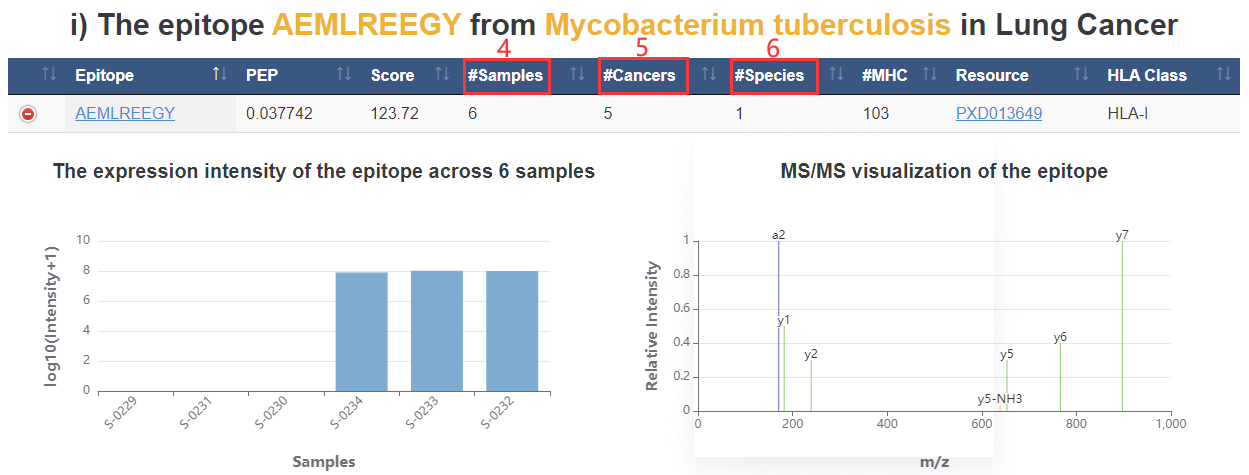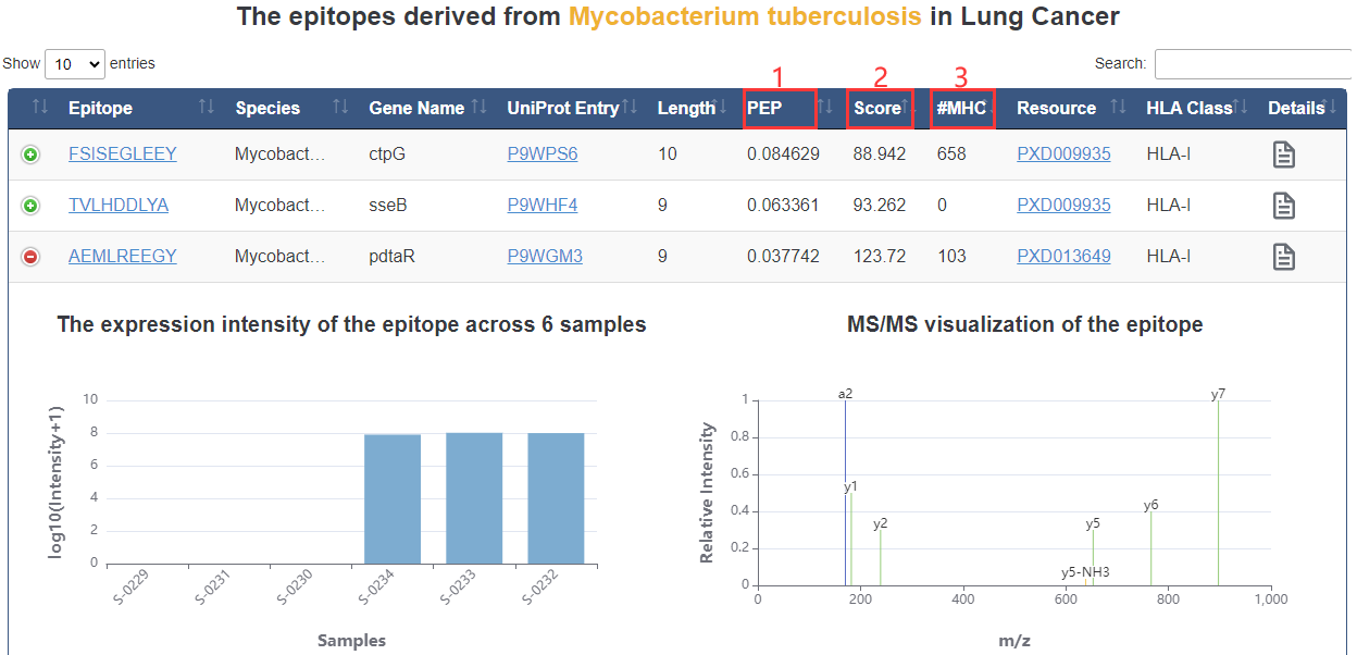 For the browse page, we provide all epitopes indentified by MS-based immunopeptidome across all cancers in MicroEpitope.