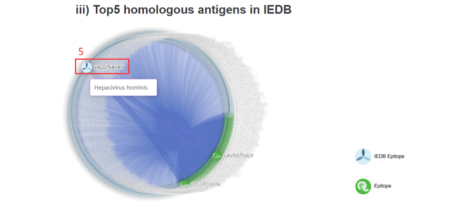 5. Click to the IEDB database. According to the sequence alignment scores, the top5 homologous antigens in IEDB were also shown as a network.