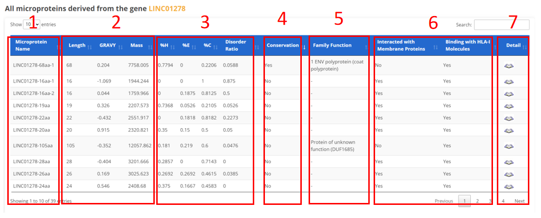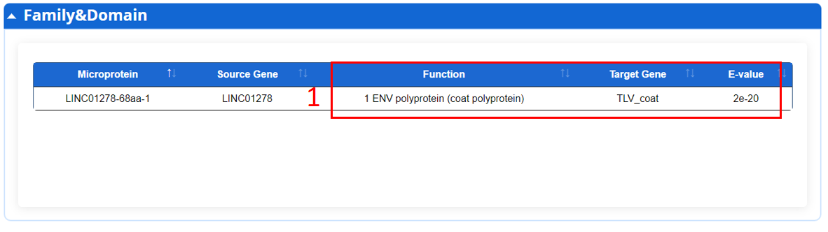 For the microprotein, we provide family and functional domains of microprotein encode by ncRNA according to Pfam database.