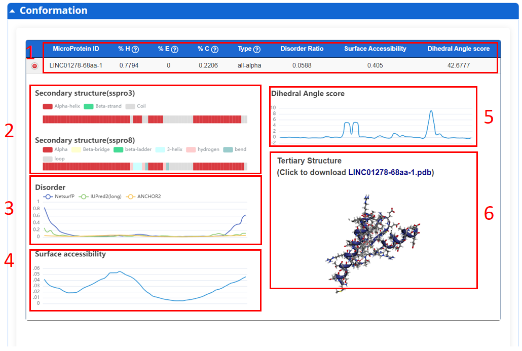 In this page, we provide conformation including 2D and 3D structure of all microprotein.