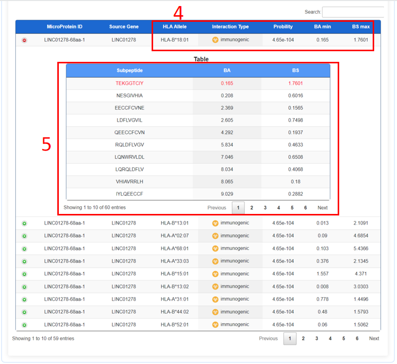 Two ways are provided to query the microprotein encoded by ncRNAs.