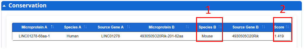 For the microprotein, we provide conservative relationship of microprotein encode by ncRNA across three different species.