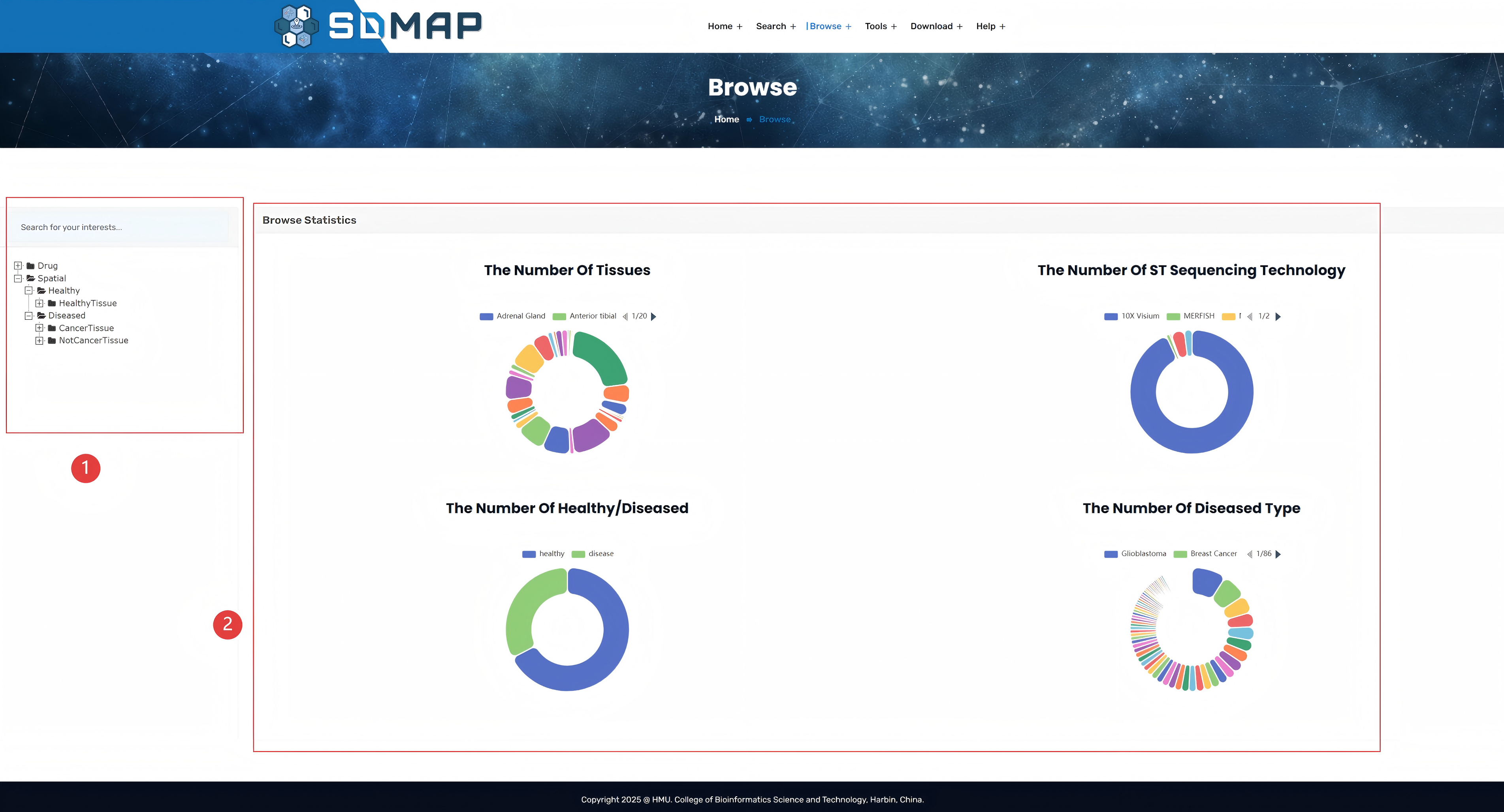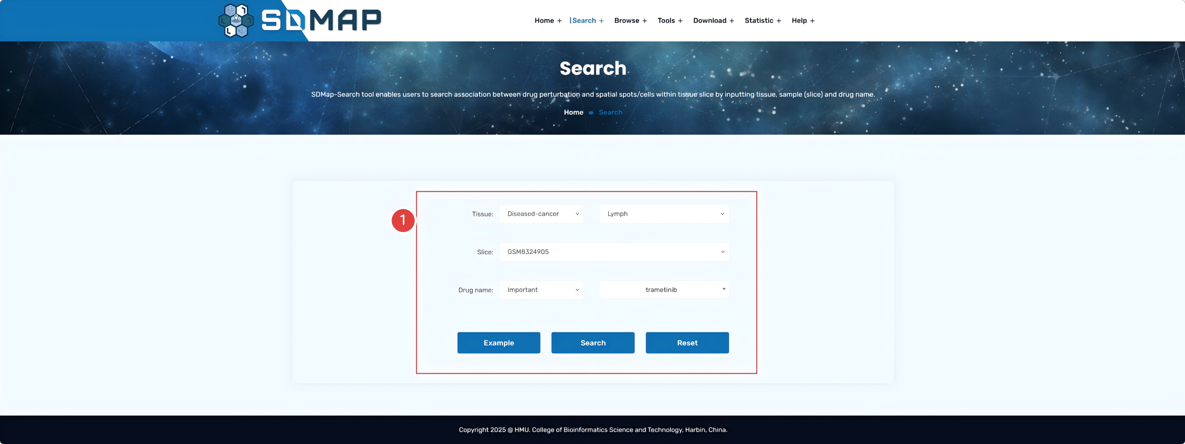 Users can explore the spatial expression characteristics of 892 target genes of 2,352 targeted drugs, and support: