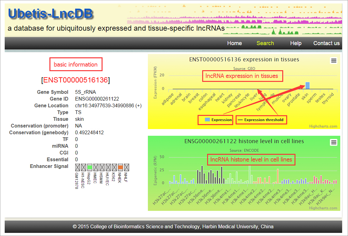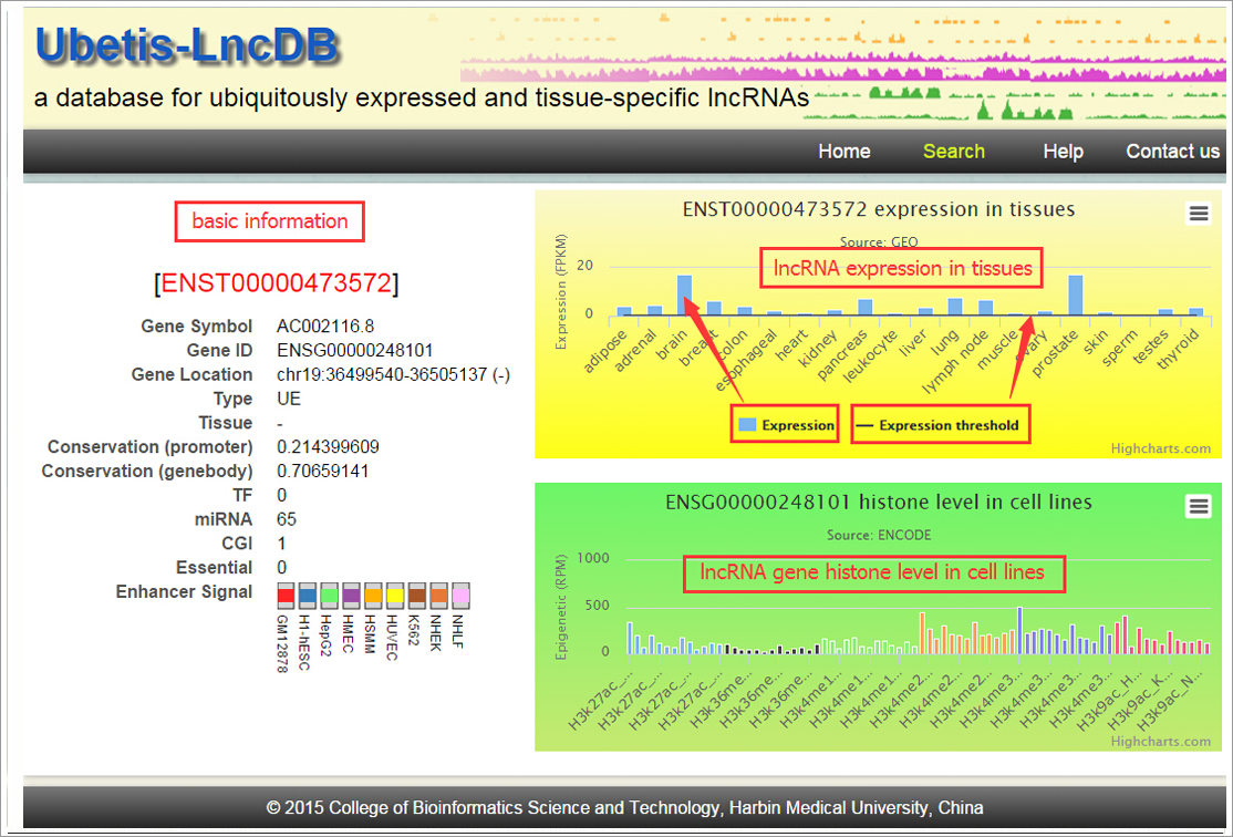 Based on these observations we propose a novel way to predict the functions of UE and TS lncRNAs through analysis of their genomic location and similarities in epigenetic modifications. Our characterization of UE and TS lncRNAs may provide a foundation for lncRNA genomics and the delineation of complex disease mechanisms.