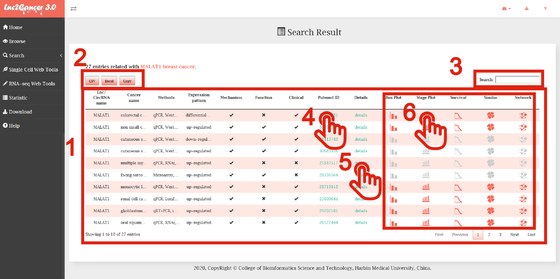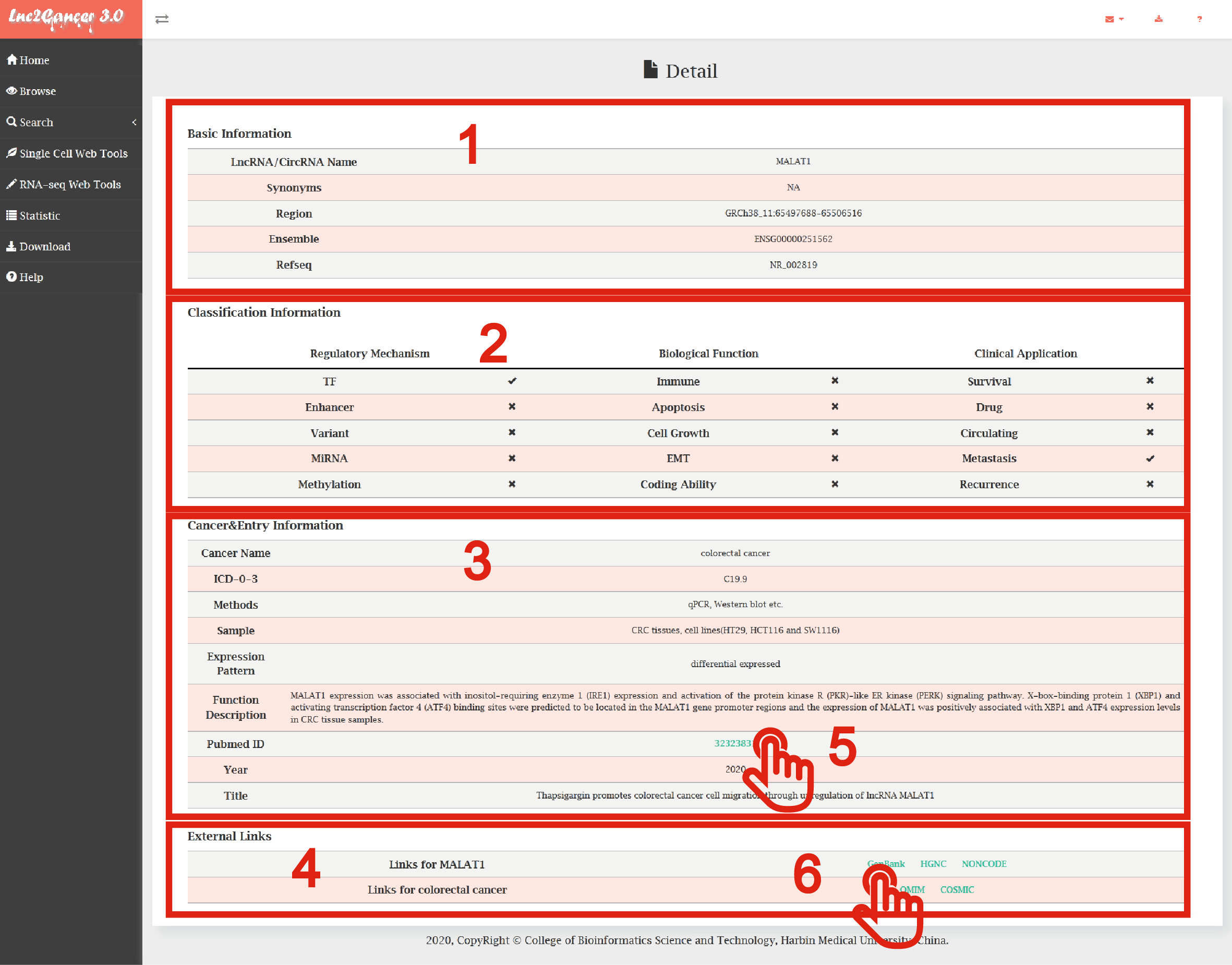 6. Users can search the external annotation information for the lncRNA by clicking on the corresponding hyperlink.