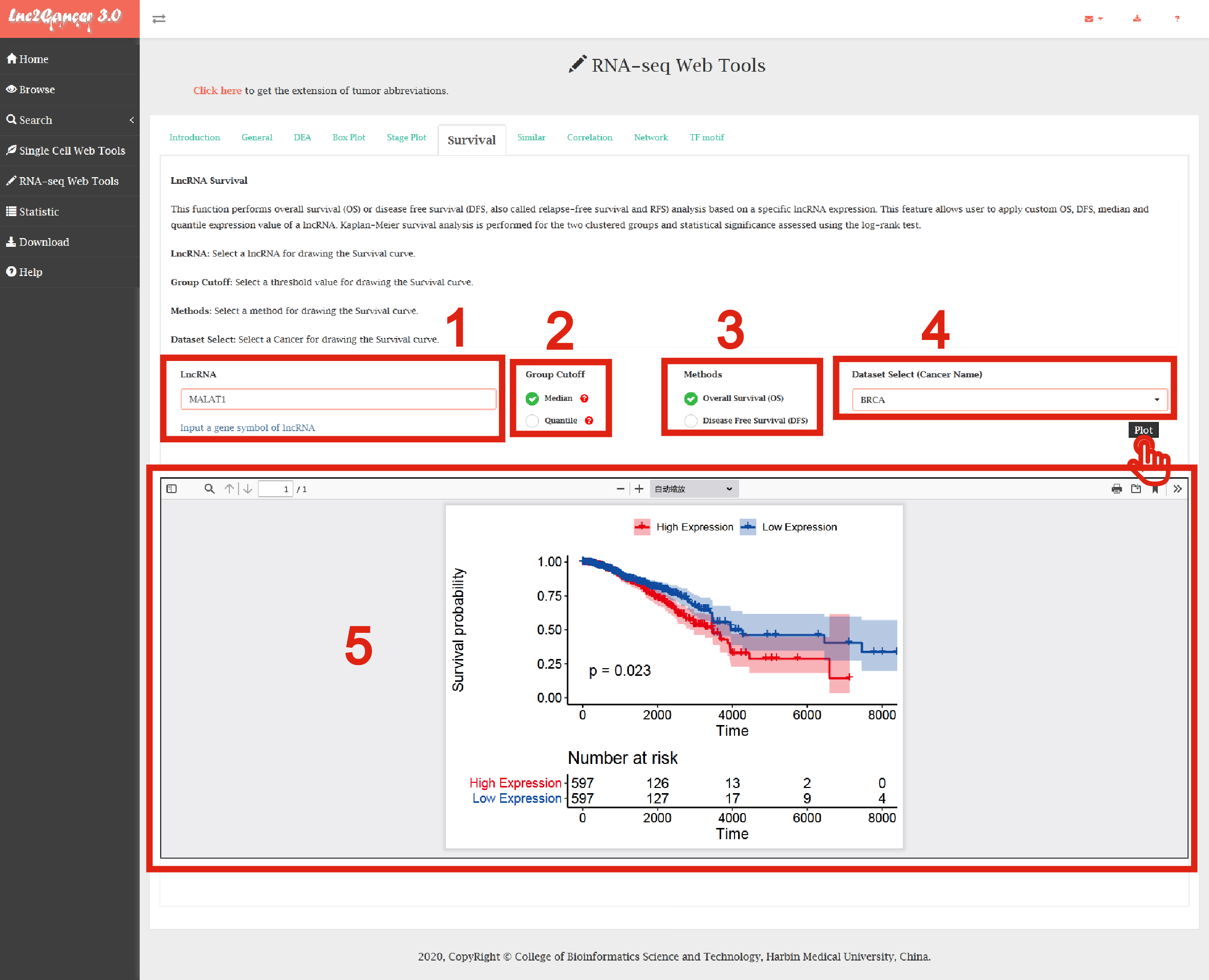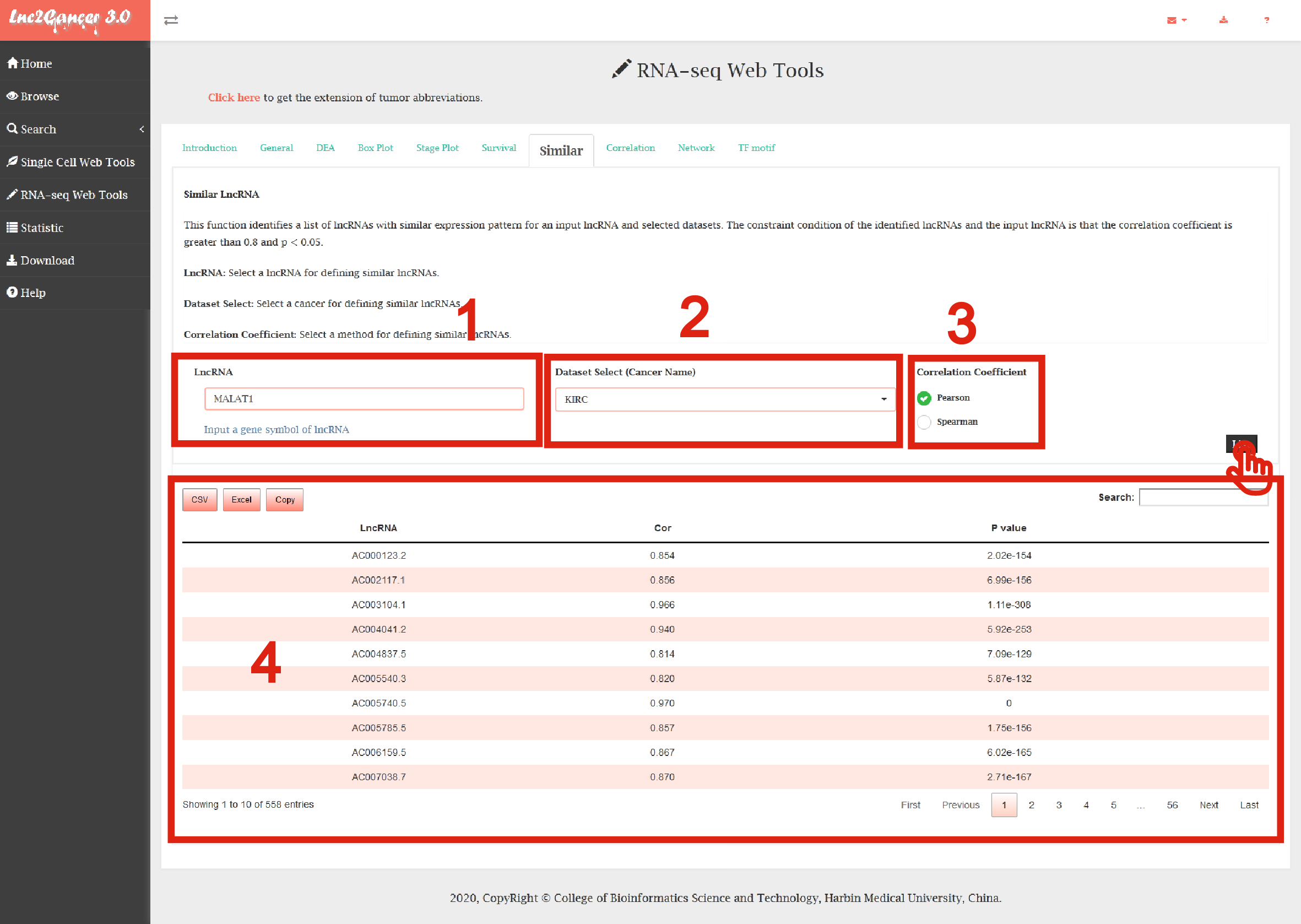 Detailed information of the RNA-seq Web Tools contained complex functions for mining cancer-related lncRNAs is displayed in Figure 7-1: