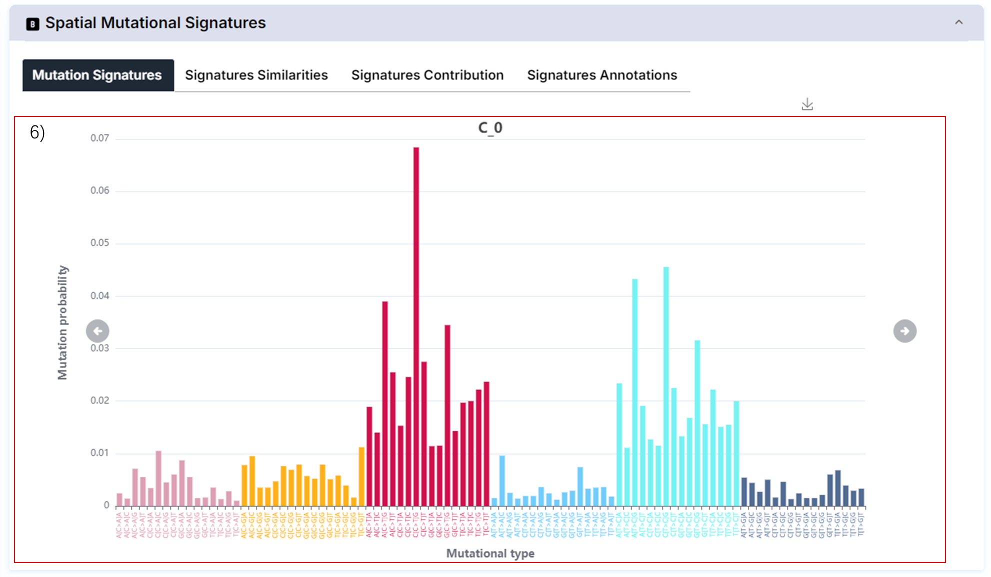 6) The distribution of spatial mutational signatures.