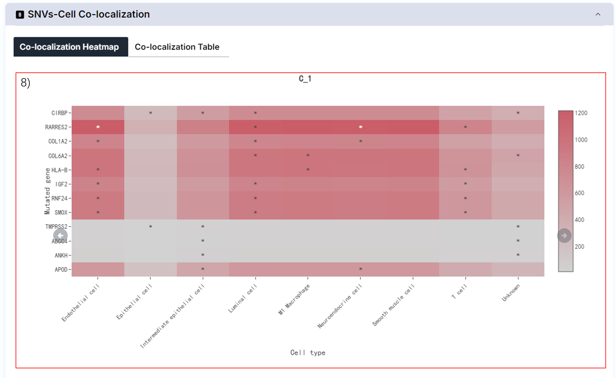 8) Co-localization of mutated genes and cells.