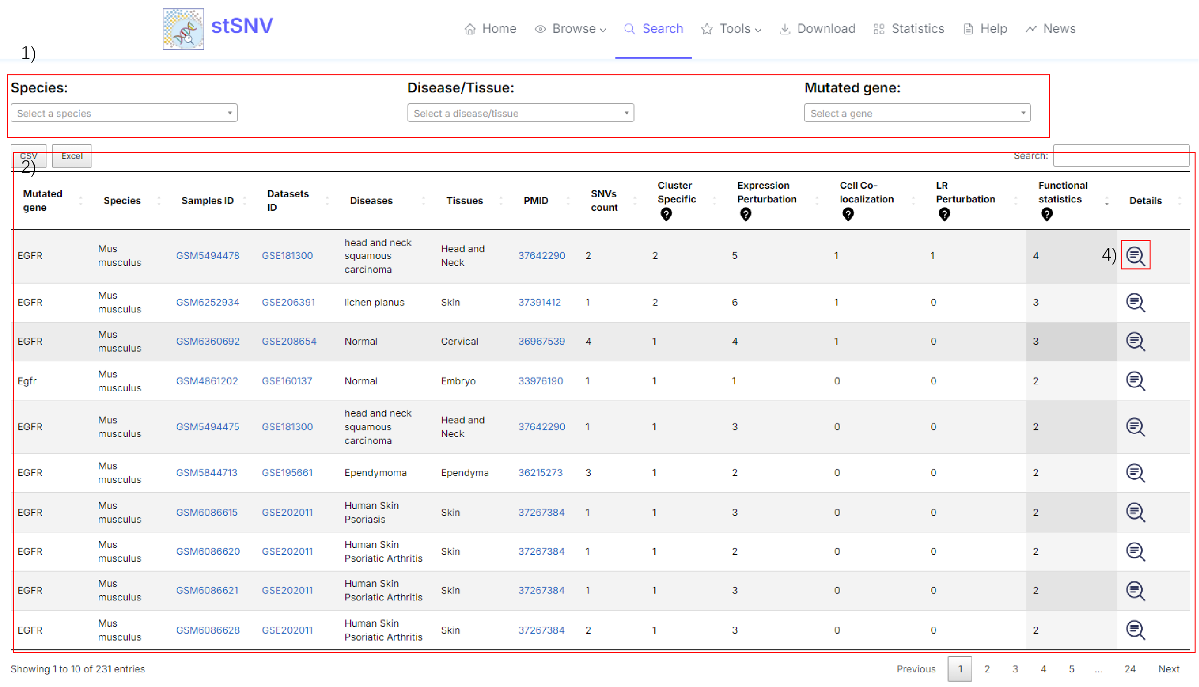 2.3 stSNV's Search: stSNV provides a user-friendly search and result interface