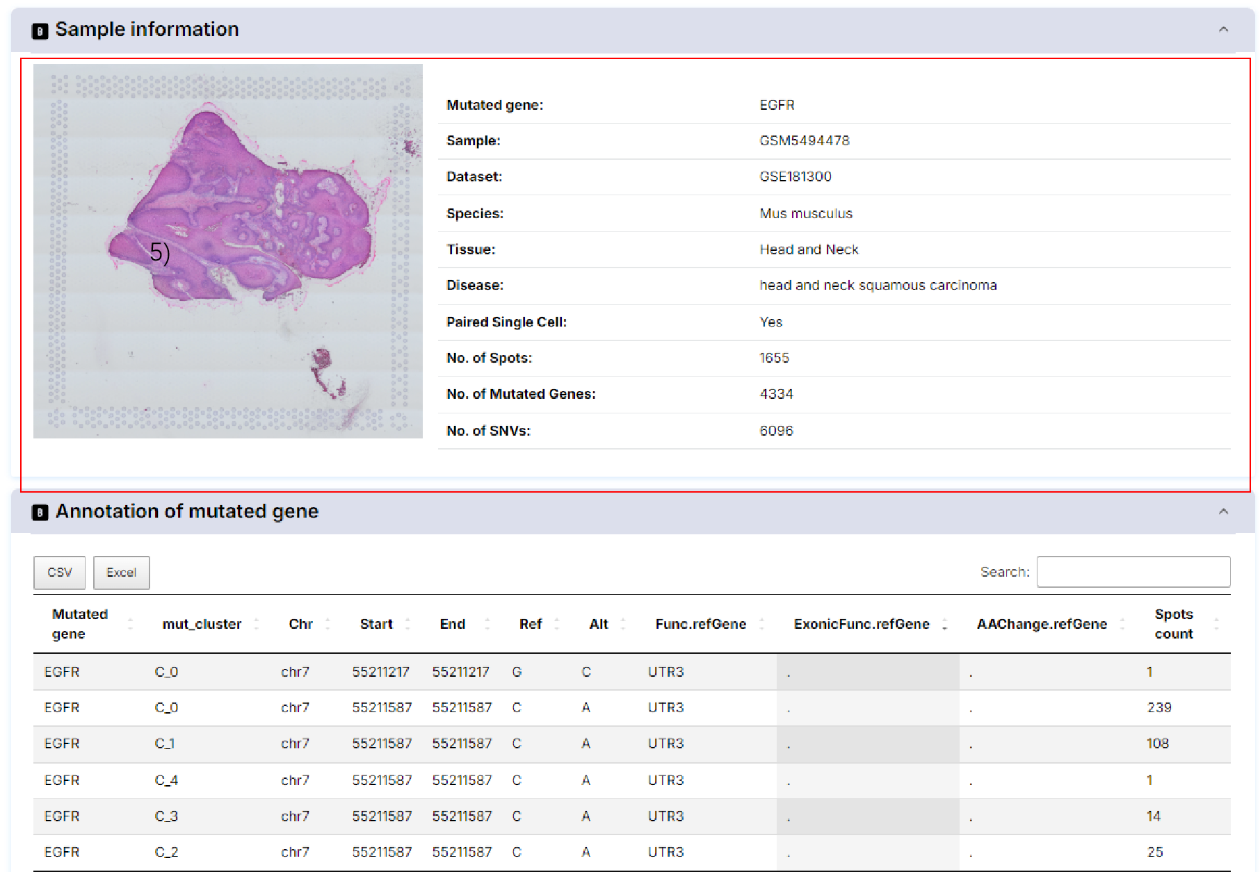 4) Click to see details of the functionally mutated gene in the spacial sample.