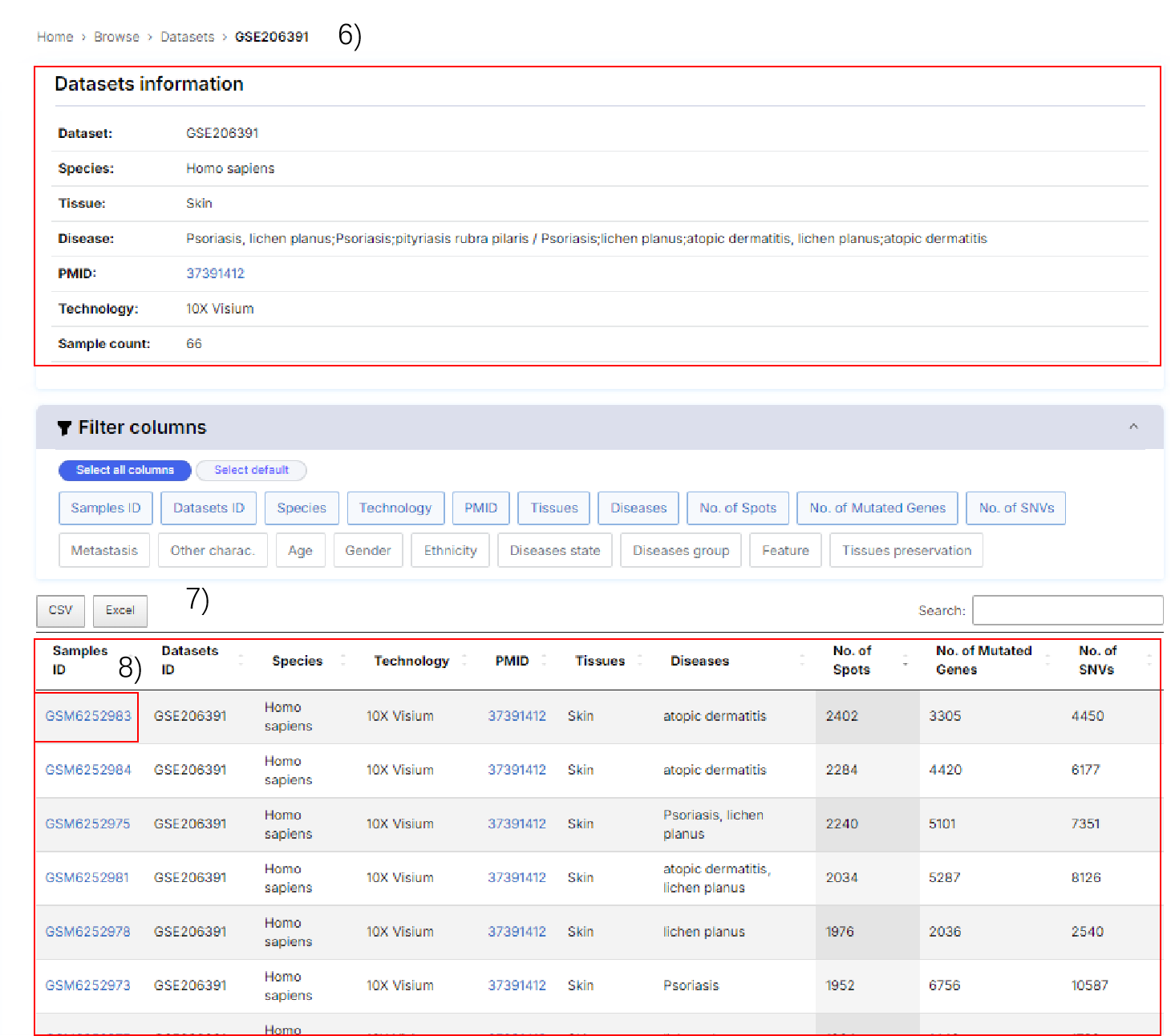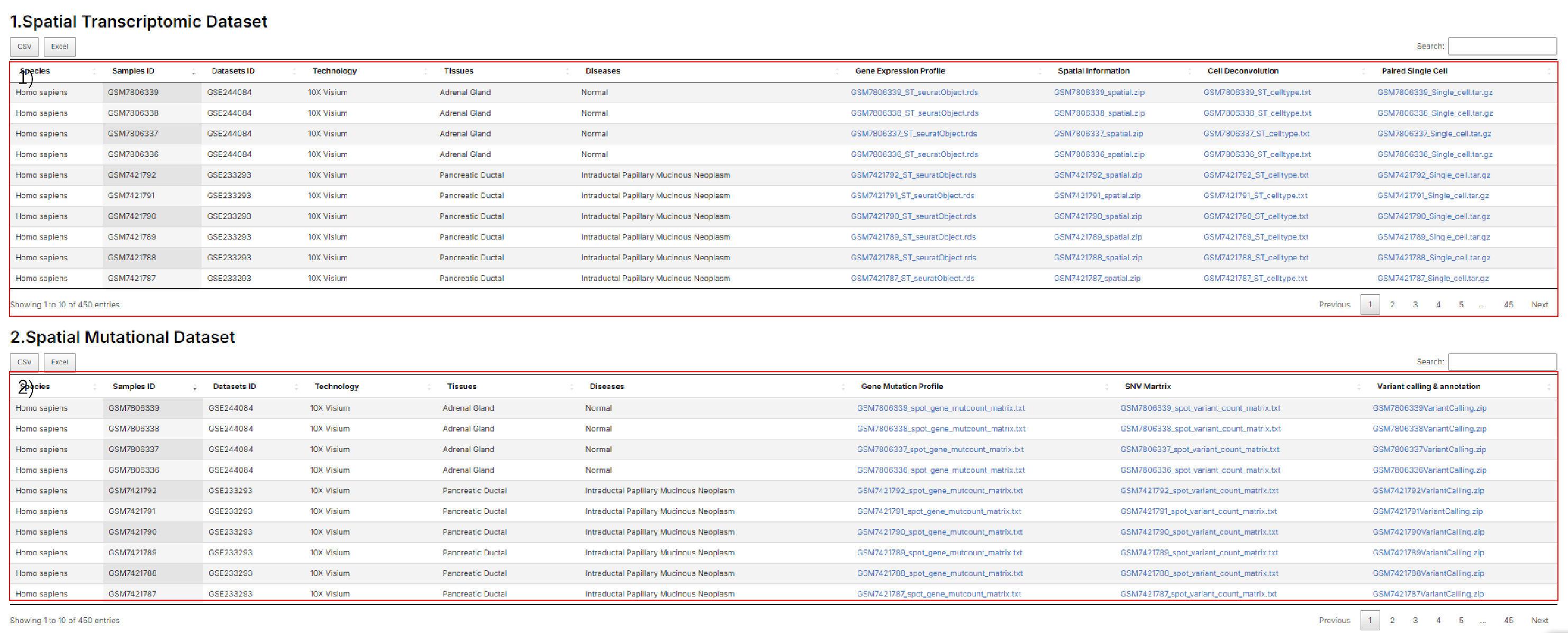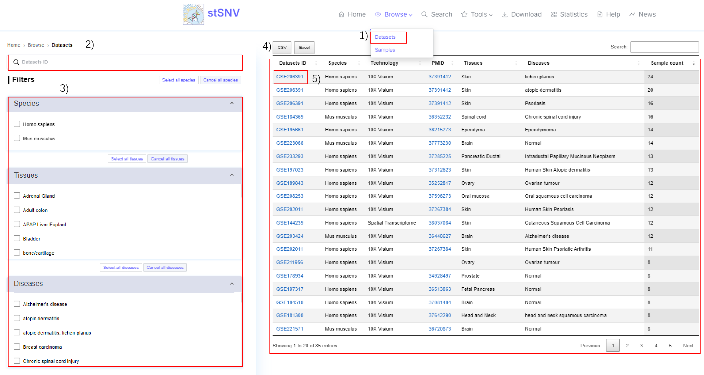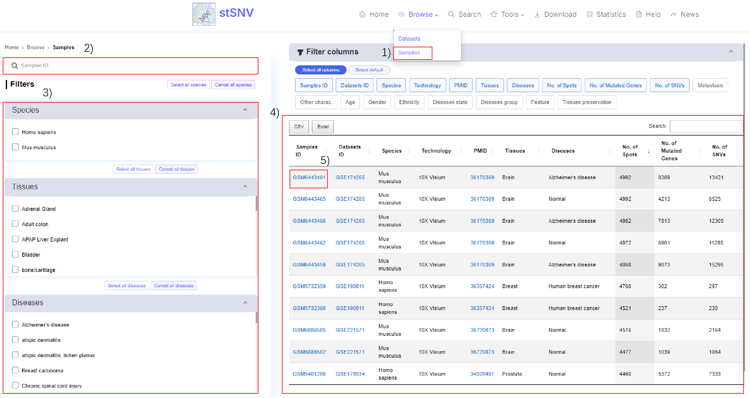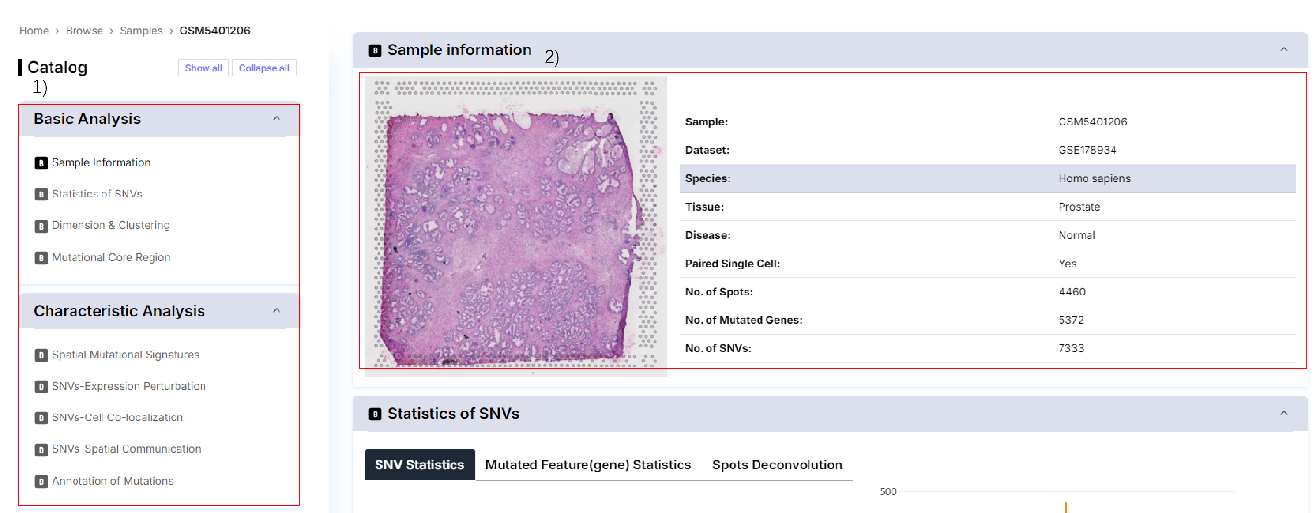2.2 stSNV's Browse: stSNV provides data information of datasets and samples